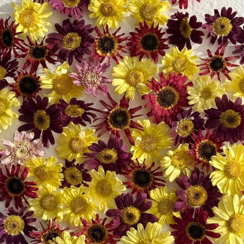 Freeze drying is a chemical free way of preserving simply by using temperature and vacuum. It is a process that takes many days. We clean each flower by hand and then place them on racks to go in the drier. The flowers retain their original structure and will last for a minimum of 3 months, most will last longer.